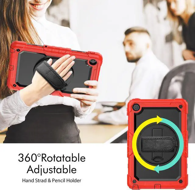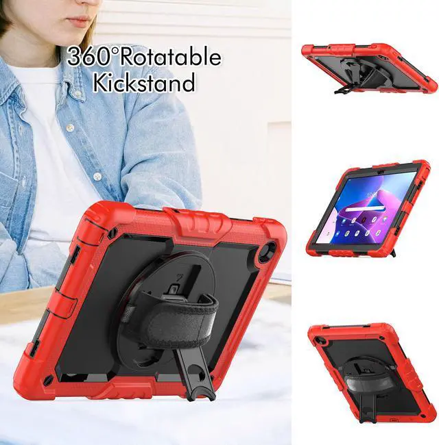 [360 Degree Rotating Stand & Hand Strap]: - This Lenovo tab M10 Plus 3rd Gen 10.6 case is designed with a 360 degree rotating kickstand and hand strap. The kickstand allows you to adjust the tablet to multiple angles freely to meet your most comfortable viewing and typing angles. While the hand strap allows you to hold your ipad mini securely with single hand, and let your other hand free to do other things.