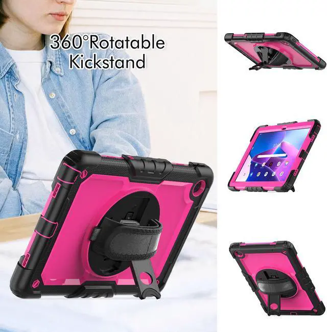 • [360 Degree Rotating Stand & Hand Strap]: - This Lenovo tab M10 Plus 3rd Gen 10.6 case is designed with a 360 degree rotating kickstand and hand strap. The kickstand allows you to adjust the tablet to multiple angles freely to meet your most comfortable viewing and typing angles. While the hand strap allows you to hold your ipad mini securely with single hand, and let your other hand free to do other things.