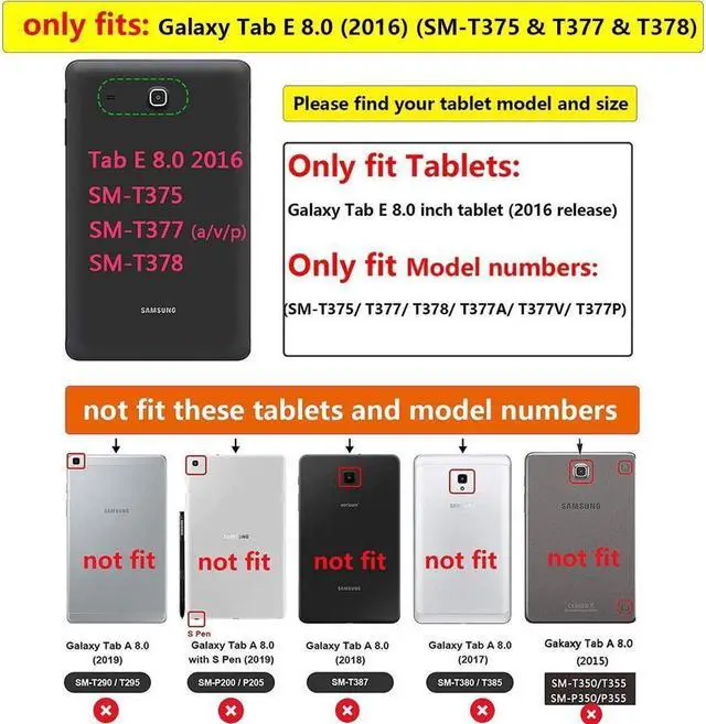 COMPATIBILITY: Specially designed for Samsung Galaxy Tab E 8.0 inch 2016 [Model: SM-T377A/SM-T377V/SM-T377P/SM-T375/SM-T378] ONLY.