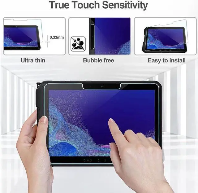 [Anti-Scratch & Shatterproof] - Tempered glass LCD HD premium screen protector with the industry-high 9H hardness, strong and durable, effectively protects the screen of your Galaxy Tab Active4 Pro from shocks and scratches.