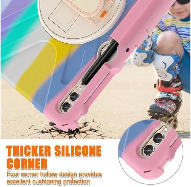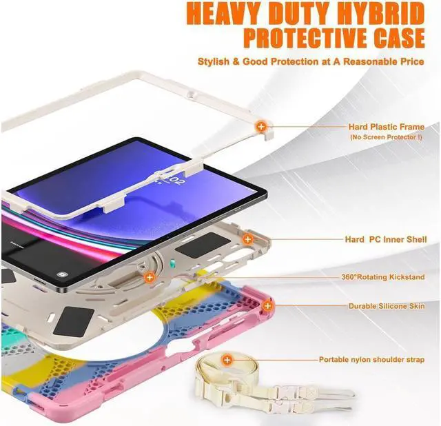3-Layer Full Protection: Advanced 3 in 1 construction with premium hard polycarbonate and impact resistant silicone material offers comprehensive protection for your tablet.Durable military-grade shock-proof case can effectively prevent accidental drops, bumps, slips and scratches