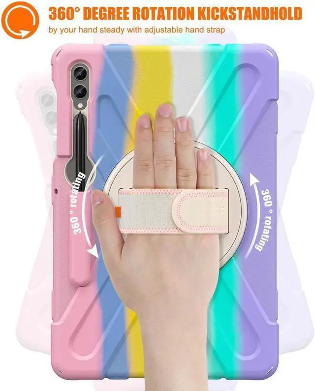 360 Degree Rotatable Kickstand & Hand Strap: 360 degree rotatable kickstand offers multiple angles for viewing, typing and reading. Ergonomic and adjustable back handle allows you to grip your tablet securely and steadily with one hand, worry-free from dropping it