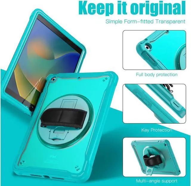 MILITARY-GRADE PROTECTION: iPad case Certified 15ft drop test, equipped with anti-collision impact-absorbing angle structure to disperse severe shocks. Shock-resistant, multi-layered iPad case with rugged PC clear back and flexible silicone rubber. Maximum protection for your devices.
