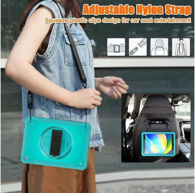 ADJUSTABLE HAND & SHOULDER STRAP: Handle can be adjusted depending on the dimension of your hand.The shoulder strap supports a more portable and secure way of carrying your iPad when you are outdoors.Perfect for during hiking, travelling and car seat.
