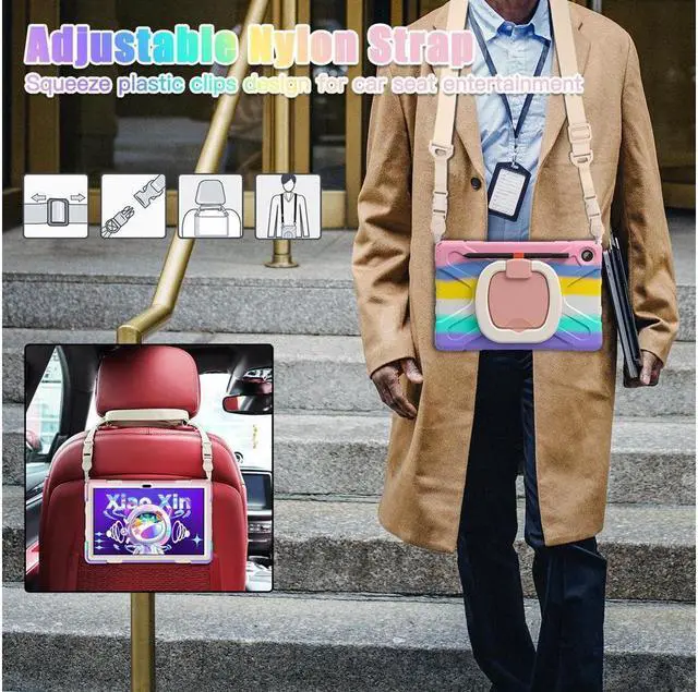 Adjustable & Detachable Carrying Strap: According to any need, remove the shoulder strap or the length can be easily adjustable. It also features displaying your tab m10 plus 10.6 inch tablet behind car head rest for entertainment for kids.