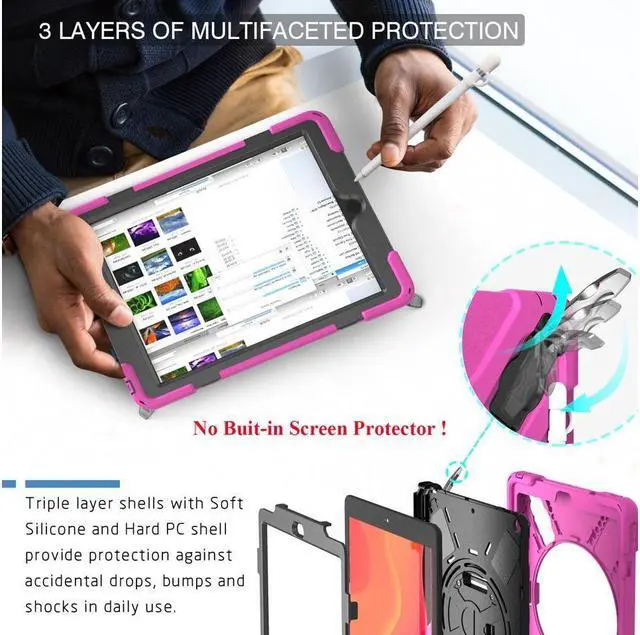 Full Body Protection-With 3 layers design silicone outer frame and 2 pieces Combination of hard reinforced inner shell, this universal ipad inch case is shockproof and help protector your ipad. Perfect for adults and kids