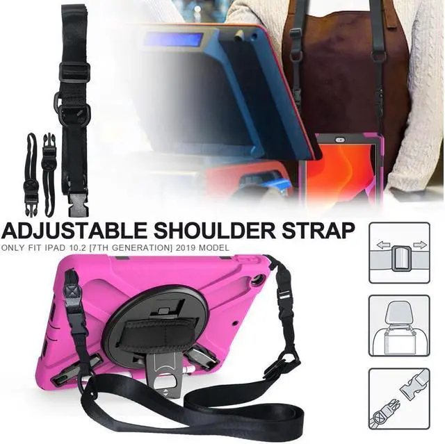 Ajustable Shoulder Strap And Hand Strap: The armor heavy duty rugged hard nonslip iPad Case comes with a detachable and attachable shoulder strap,so you can carry the tablet on neck or shoulder like a bag and sling it on car head rest. The handle hand grip is also adjustable, which allows you to securely grip your iPad with one hand.