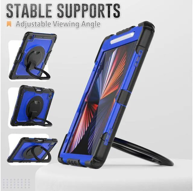 [Rotating Kickstand & Adjustable Hand Strap & Portable Shoulder Strap]: 360 degree rotating kickstand provides multi-angle viewing, adjustable hand strap makes you hold or use your iPad easily,portable shoulder strap makes your hands free, helps carry your iPad conveniently when you are at work, on a trip or gaming with kids.