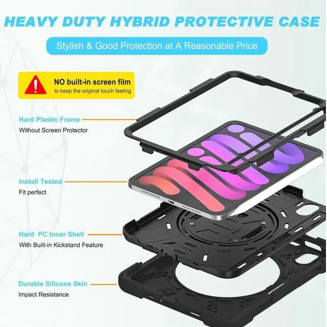 Full Body Protection-With 3 layers design silicone outer frame and 2 pieces Combination of hard reinforced inner shell, this ipad Mini 6/mini 7 case is shockproof and help protector your ipad. Perfect for adults and kids.