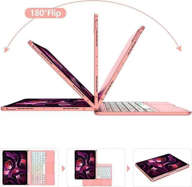 360-degree Rotation and 180-degree Flip: 360-degree rotation supports you to watch from multiple angles to meet your visual needs. Supports 180-degree flip, and easily flip your iPad. It only takes a few seconds to change your iPad to MacBook. You can use it to show your results at work, watch your favorite movie or read a new book, and enjoy the iPad. Even if you want to go out, it is very convenient to carry it, just like a normal laptop