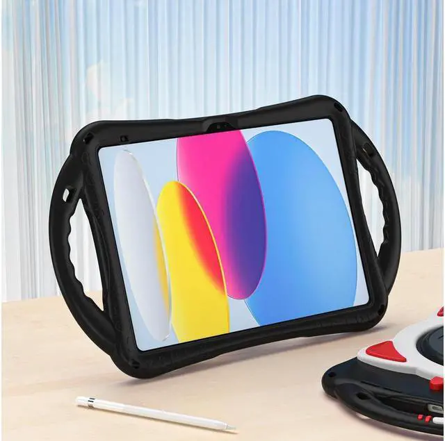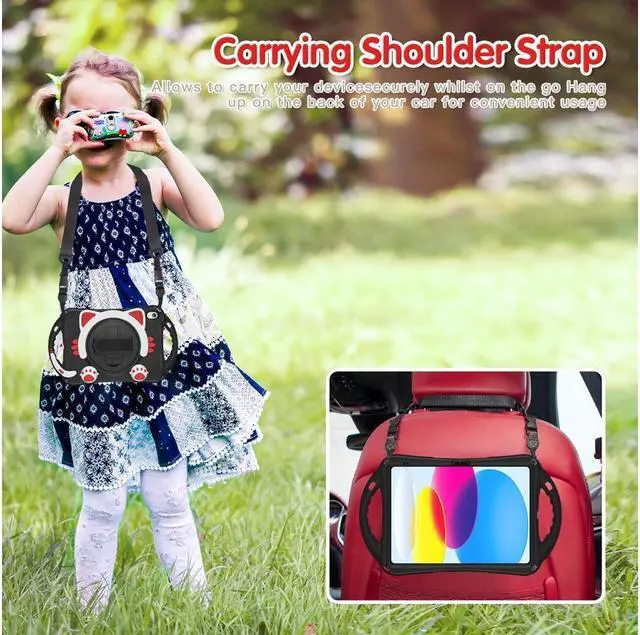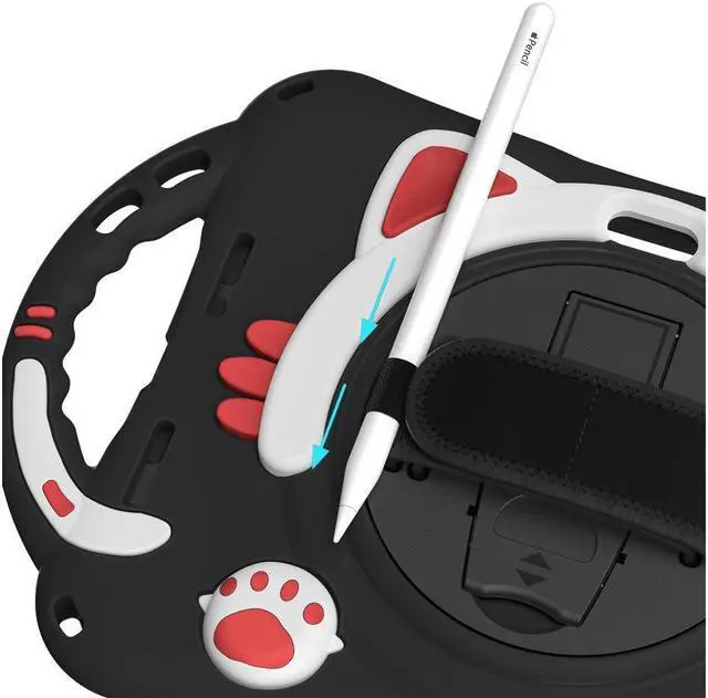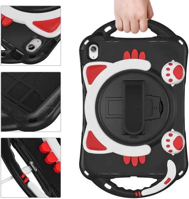 Built-in 360 degree rotating kickstand and adjustable hand strap provide a more flexible and convenient way to use your iPad, ideal for boys,girls,children.
