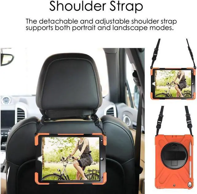 [iPad Carrying Strap]: The armor heavy duty rugged hard nonslip protective tablet case comes with a detachable and attachable shoulder strap, so that you can carry the iPad tablet on neck or shouder like a bag, can also sling it on car head rest.