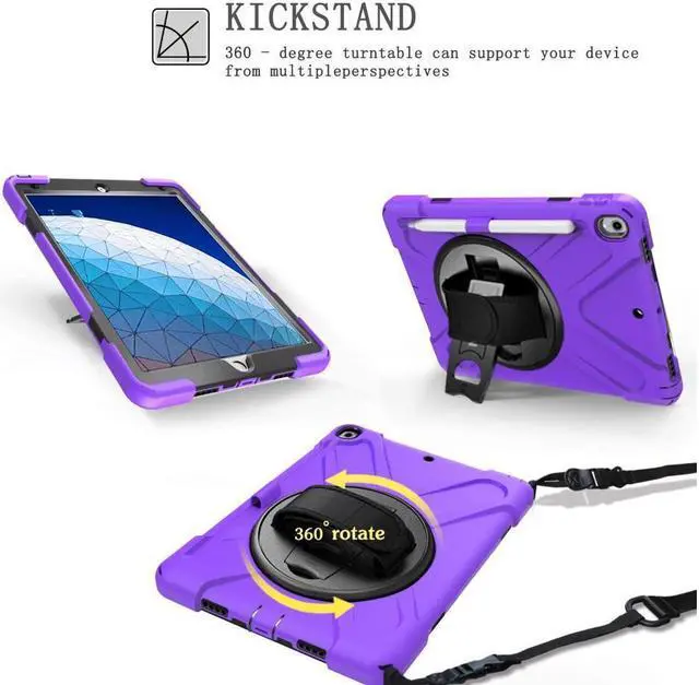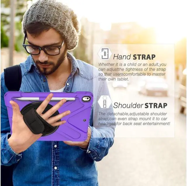 [iPad Carrying Strap]: The armor heavy duty rugged hard nonslip protective tablet case comes with a detachable and attachable shoulder strap, so that you can carry the iPad tablet on neck or shouder like a bag, can also sling it on car head rest.