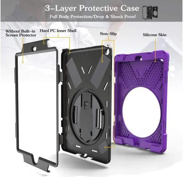 Three Layer Defender Case: Full body hybrid defender triple layers for extra protection. There are A inner hard polycarbonate shell, a soft shock resistant dropproof silicone outer shell and a front frame. This smart design provides iPad Air 1 with max protection. Extremely ideal for work, kids and children, including boys and girls.