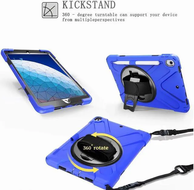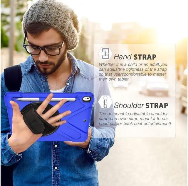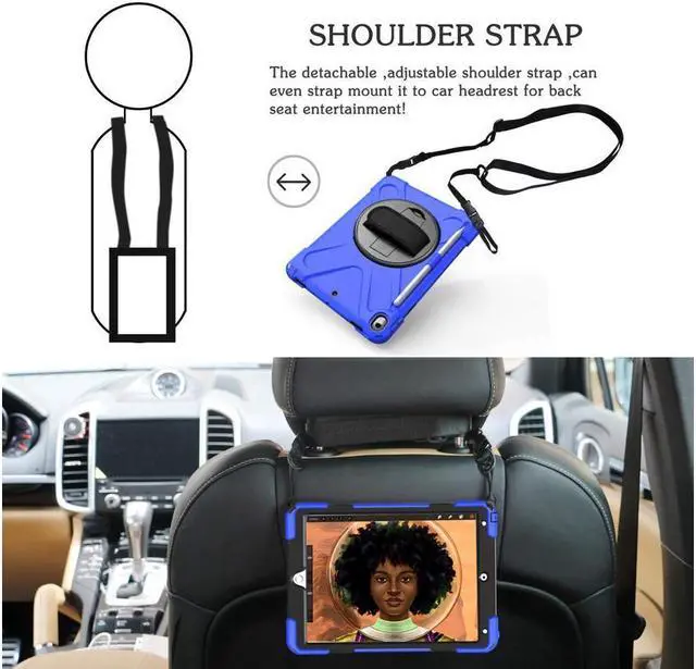 [iPad Carrying Strap]: The armor heavy duty rugged hard nonslip protective tablet case comes with a detachable and attachable shoulder strap, so that you can carry the iPad tablet on neck or shouder like a bag, can also sling it on car head rest.