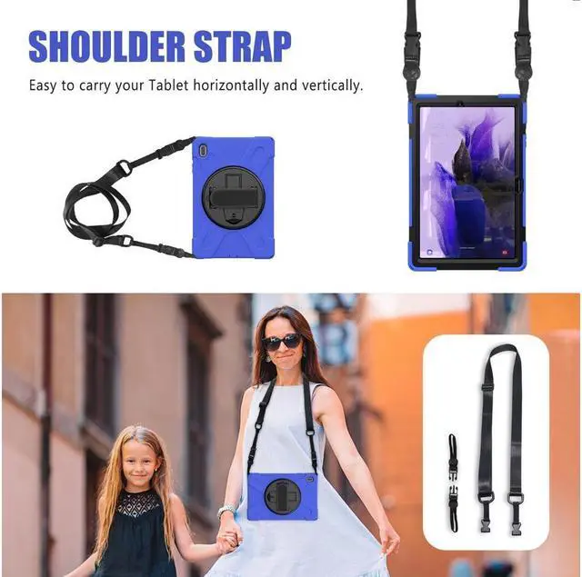 360 DEGREE ROTATING STAND& HAND STRAP --- Built-in Kickstand provides vertical and horizontal view, offering optimum position for typing or viewing. The 360°rotating Hand Strap allows you to grip your tablet securely and steadily with one hand. Great for teaching and training, conferences, construction and outdoor work.
