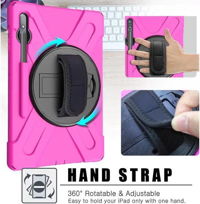 [360 Degree Rotating Stand]: 360 degrees rotatable kickstand & The adjustable hand strap for better experience with your iPad. Convenient for watching videos, conferences, construction and outdoor work.