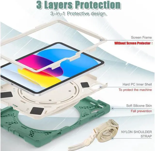 Made of kid-friendly,non-toxic and shock absorbing Silicone, its three layer structure design provide a good full body protection from drop bumps, and shock; Built-in Anti-scratch Screen Protector protect your iPad from being scratched.