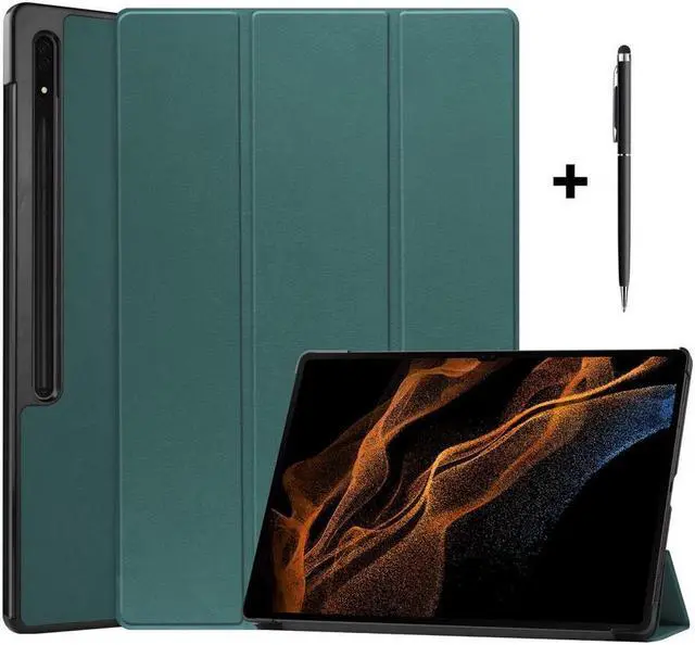 Adjustable Stand Angles: Tri-fold front cover has flip capability to transform the Samsung Tab S8 Ultra case into a viewing stand.