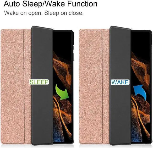 Auto Wake/Sleep: This smart tablet case built-in magnetic closure, automatically wakes or puts your new Tab S8 Ultra to sleep when the lid is opened and closed (only when the function of your tablet turned on). When you are not using it, just cover the protective case cover directly, which is convenient and saves power.