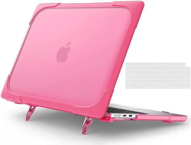 No cut-out design, Apple logo shines through the case; Built-in foldable stand provides an ergonomic typing angle and a better visual experience, helpful to relieve your neck strain