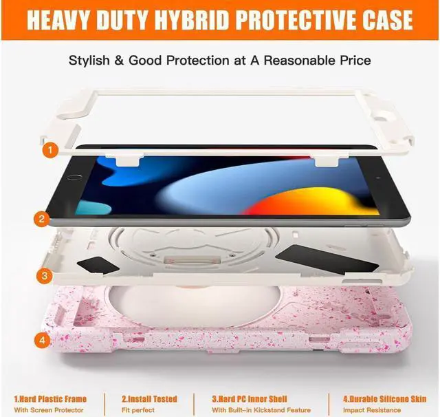 Full Body Protection-With 3 layers design silicone outer frame and 2 pieces Combination of hard reinforced inner shell, this ipad 7th/8th/9th generation case is shockproof and help protector your ipad. Perfect for adults and kids.