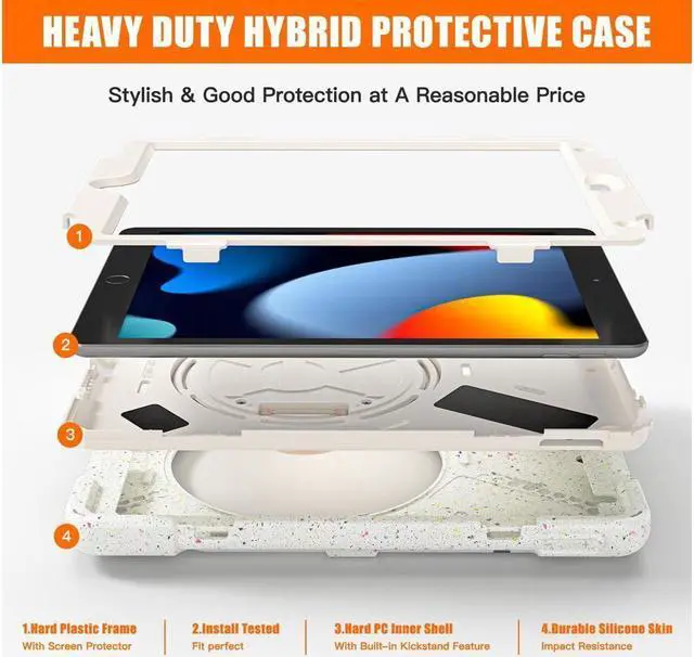 Full Body Protection-With 3 layers design silicone outer frame and 2 pieces Combination of hard reinforced inner shell, this ipad 7th/8th/9th generation case is shockproof and help protector your ipad. Perfect for adults and kids.