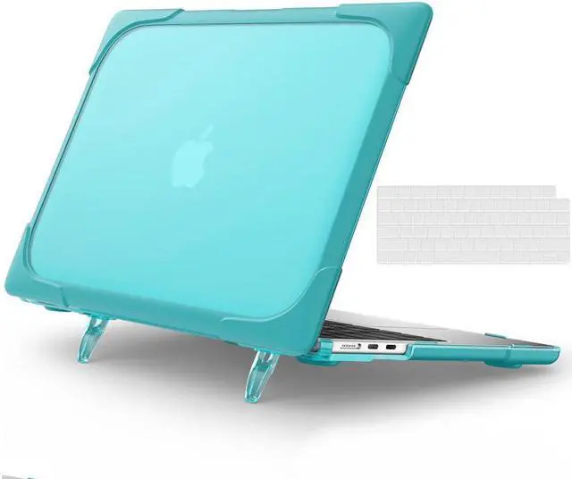 No cut-out design, Apple logo shines through the case; Built-in foldable stand provides an ergonomic typing angle and a better visual experience, helpful to relieve your neck strain