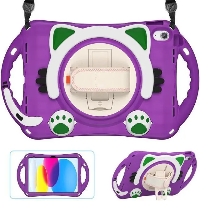 Cute Cats Kids Silicone Case for iPad (A16) 11th generation 11 inch 2025 (Model: A3354, A3355, A3356) and iPad 10th Generation 10.9 inch 2022 ( model: A2757, A2777, A2696). Cases allows easy access to all features (Cameras, Speaker, Ports and Buttons)
