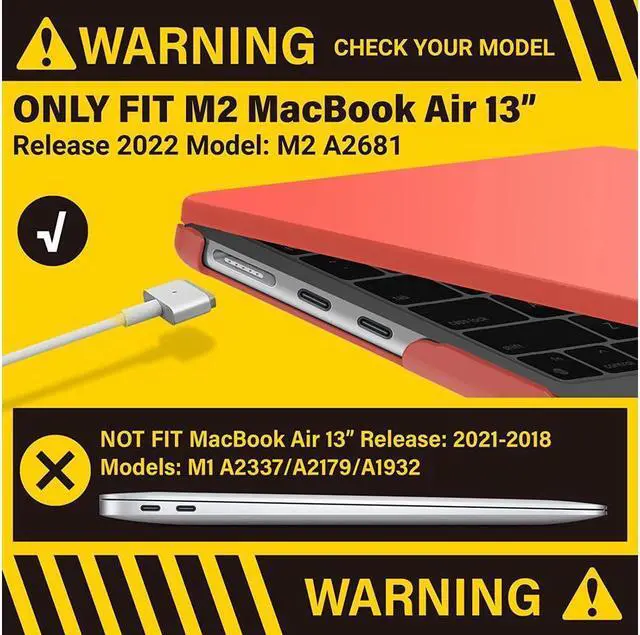 ONLY compatible with MacBook Air 13.6 Inch 2022 2023 2024 2025 Release, Model: A2681 (M2 Chip) / A3113 (M3 Chip) / A3240 (M4 Chip) with Liquid Retina Display and Touch ID. WARNING: This case is NOT compatible with other model laptops.
