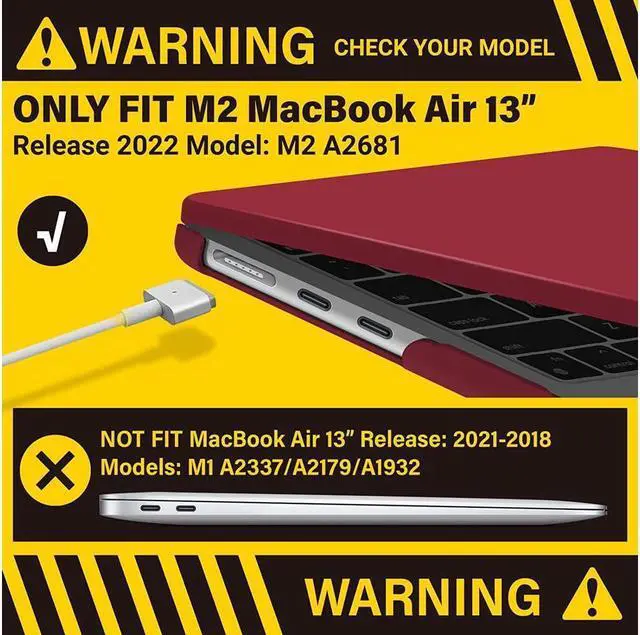 ONLY compatible with MacBook Air 13.6 Inch 2022 2023 2024 2025 Release, Model: A2681 (M2 Chip) / A3113 (M3 Chip) / A3240 (M4 Chip) with Liquid Retina Display and Touch ID. WARNING: This case is NOT compatible with other model laptops.