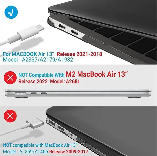 Designed ONLY to be compatible with MacBook Air 13 inch with Retina Display & Touch ID (Models: A2337 M1 & A2179 & A1932, 2022 2021 2020 2019 2018 Release). Please kindly check the model number "Axxxx" on the bottom of the laptop before purchase, make sure it matches the model number is "A2337" or "A2179" or "A1932".