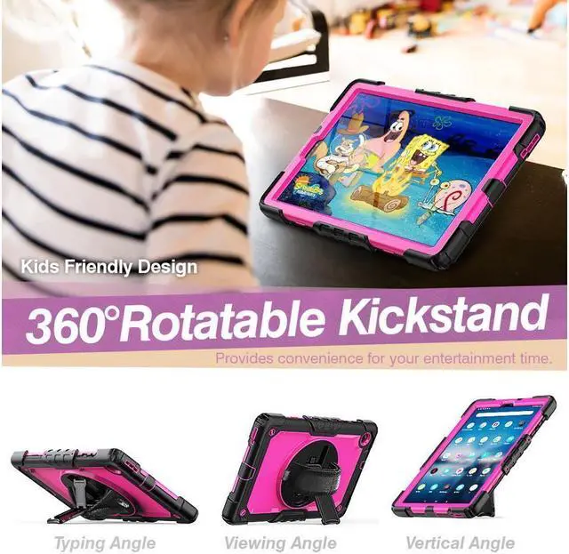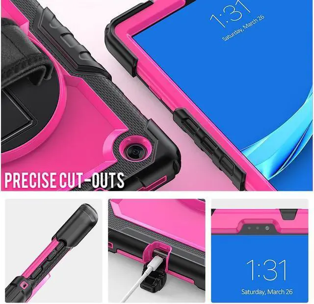 360° Rotating Kickstand & Hand Strap --- 360° Rotating Kickstand offers multiple angle stands for enjoying the most comfortable keyboard-typing and movie-viewing. And Adjustable Hand Strap support you hold or use your device easier in all directions. Also designed with a Pencil Holder, it's convenient and easy for you to carry your Pen with your device (Note: Pen is NOT included).