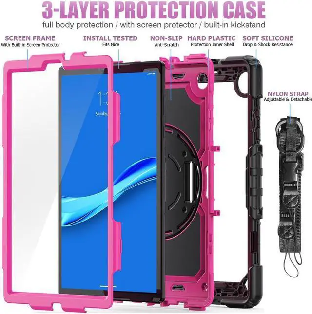 Full Body Protection with Screen Protector --- This Lenovo tablet M10 Plus 10.3” case is composed of flexible silicone and PC linings as well as built-in screen protector, providing your iPad in full body protection against accidental drops, scratches, shocks, or bumps. It's kids friendly as well.