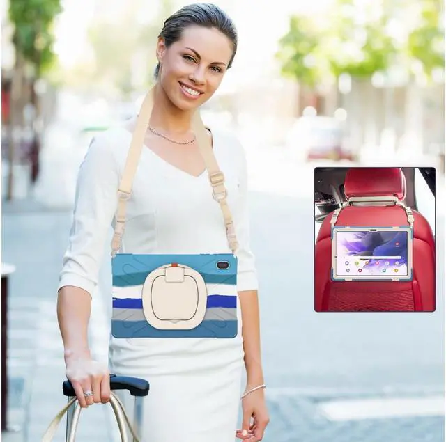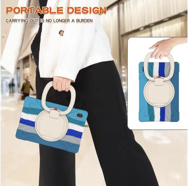 KEY_TAB KEY_TAB KEY_TAB Convenient. A 360-degree rotating kickstand comes with a hand strap, soft shoulder/neck strap for carrying around. Easy for you to hold or use in all directions, ideal for kids, students, teachers, engineers, and waiters, etc.