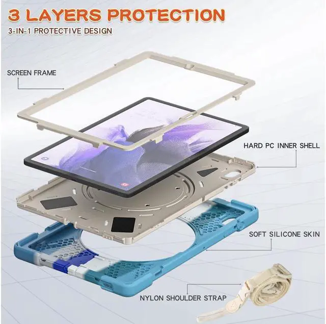 KEY_TAB KEY_TAB KEY_TAB Shockproof and durable. 3-layer structure protection, 2-layer heavy PC covered with 1-layer anti-skidding silicone. Perfect cutouts for speakers, cameras, and other ports. Against accidental drops, scratches, and dust.