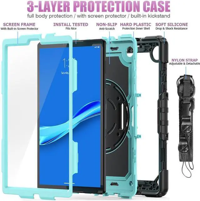 Full Body Protection with Screen Protector --- This Lenovo tablet M10 Plus 10.3” case is composed of flexible silicone and PC linings as well as built-in screen protector, providing your iPad in full body protection against accidental drops, scratches, shocks, or bumps. It's kids friendly as well.