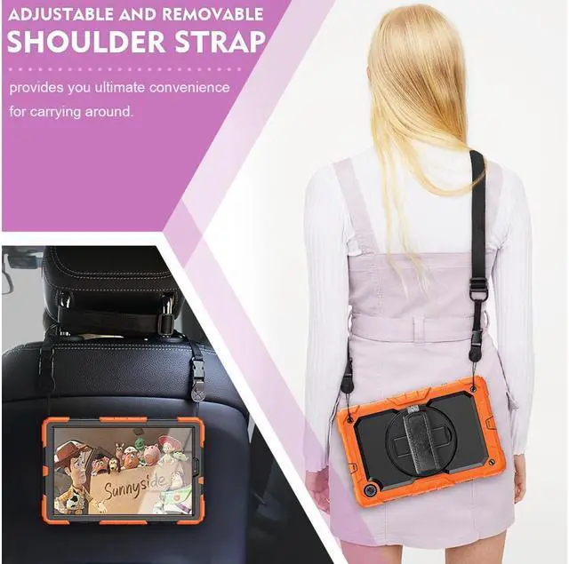 Removable & Adjustable Shoulder Strap --- Adjustable and Detachable shoulder strap can be attached to any two holes in the PC cover to carry your Lenovo M10 plus tablet vertically or horizontally like a messenger bag, you could even hang it behind the car seat or hang on wherever you want. Convenient for carrying your device when you at work, on trip or at outdoors. Ideal for kids, students, teachers or anyone else who needs it for presentations, conferences and travelling.