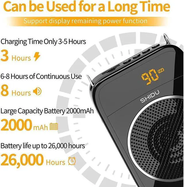 This SHIDU 15W 2000 mAh Voice Amplifier with LED Display is a favorite device among Teachers Tour Guides, Coaches, Yoga Fitness, Instructors, and outdoor enthusiasts etc. who need to stay in contact with large groups. Our product is a great assistant to save your throat.
