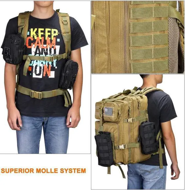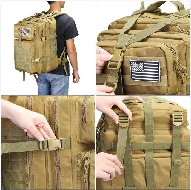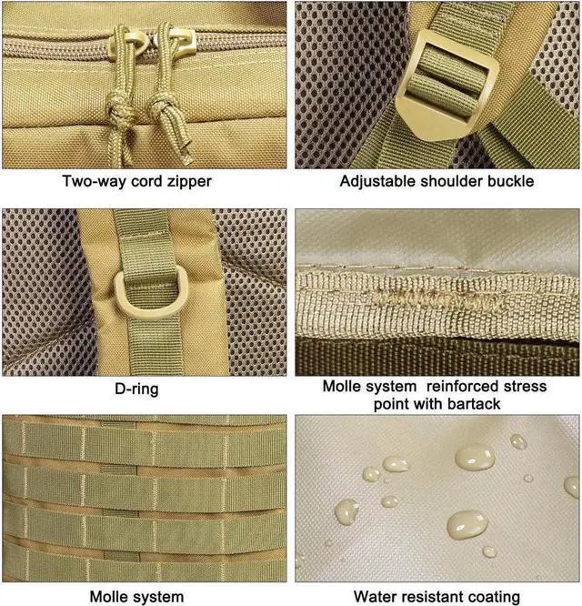 Updated version of SBS zipper: This updated version incorporates SBS zippers and provides long-lasting performance. This military tactical backpack is made of 1000D polyester fabric, which is wrinkle resistant and shape retention.