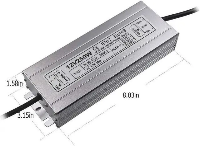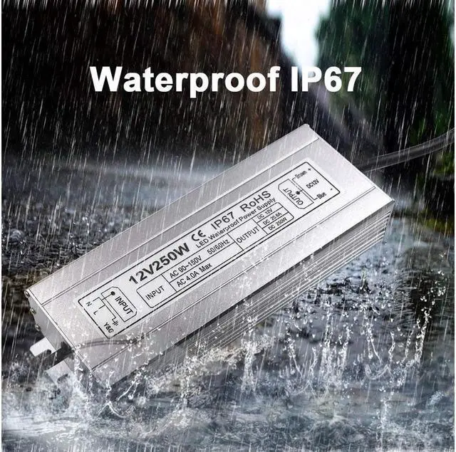 • LED Power Supply 250W High-powerTransformer Waterproof IP67 12V DC Driver Adapter for Outdoor Use