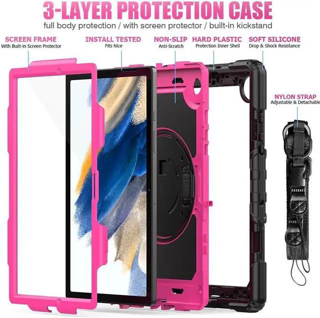 3-LAYER FULL BODY PROTECTION --- Galaxy Tab A8 10.5 inch case composed of built-in screen protector, dual-layer premium hard plastic shells[Top PC Frame & Inner Hard PC] and soft outer silicone. This shockproof case with full-body protection can provide impact protection from accidental slid, drop, shock, avoiding scratches and keep your tablet safe.