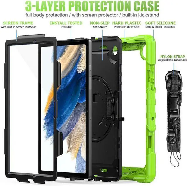 3-LAYER FULL BODY PROTECTION --- Galaxy Tab A8 10.5 inch case composed of built-in screen protector, dual-layer premium hard plastic shells[Top PC Frame & Inner Hard PC] and soft outer silicone. This shockproof case with full-body protection can provide impact protection from accidental slid, drop, shock, avoiding scratches and keep your tablet safe.