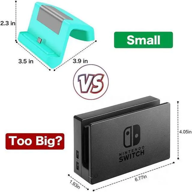 Charge while playing - There's no risk of overheat and scratching since switch just sits on top of the dock which offers good ventilation to keep switch cool. So that you can charge your Nintendo Switch while playing games.