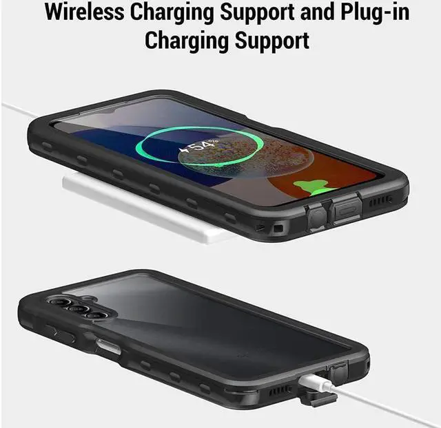 Shock-Absorbent Protection: The Waterproof Case Samsung Galaxy A14 is made of shock-absorbing TPU and PC, with all four corners reinforced to withstand shocks and falls up to 6.6 feet. It protects your phone screen against drops & cracks & surface scratches.