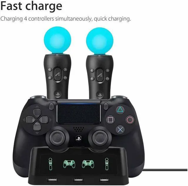 Easy to Use --- Simply place your PS4 and PS Move controllers into the charging dock and connect the USB power cable to your PS4 or PS VR. Charging starts immediately, so you can get back to gaming in no time.