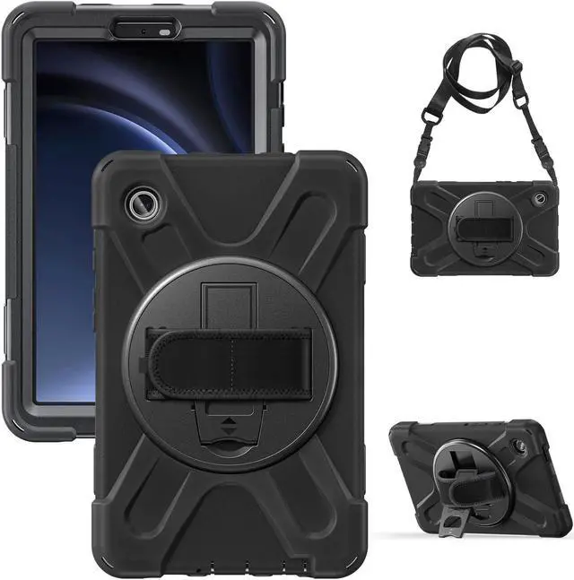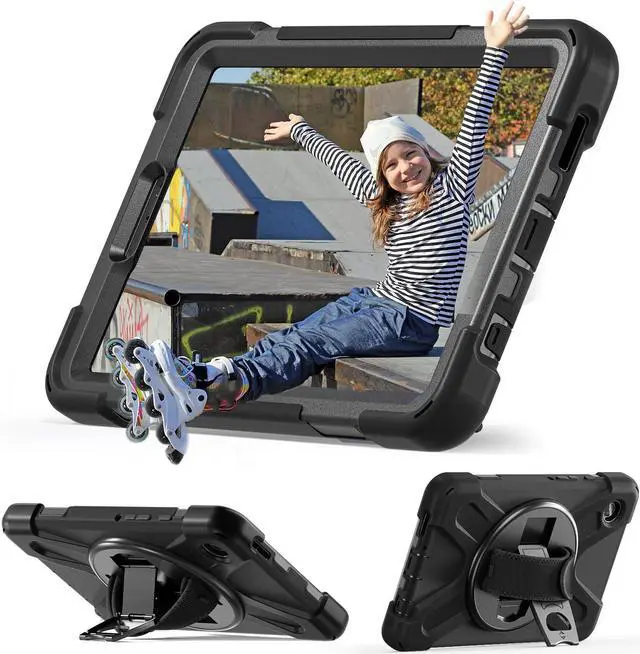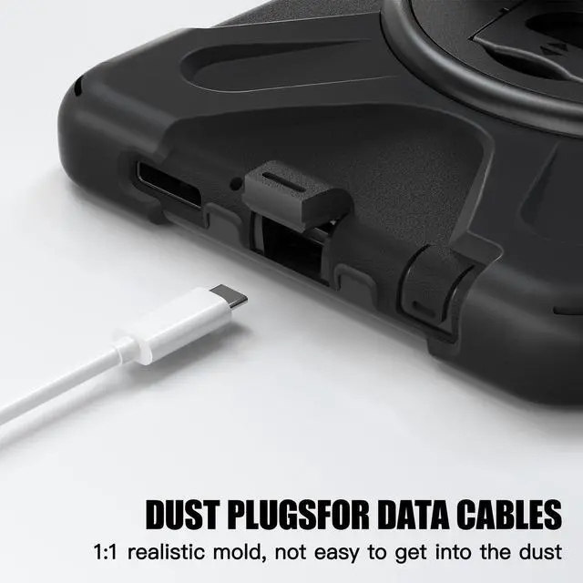 • 360 Degree Rotatable Kickstand & Hand Strap: 360 degree rotatable kickstand offers multiple angles for viewing, typing and reading. Ergonomic and adjustable back handle allows you to grip your tablet securely and steadily with one hand, worry-free from dropping it