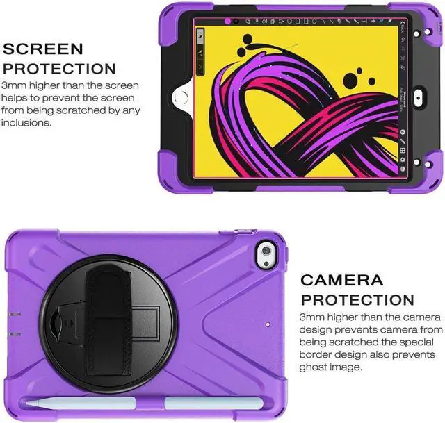360°Rotatable Kickstand & Hand Strap: 360°Rotatable Kickstand offers multi-angle stands for enjoying the most comfortable keyboard-typing and movie-viewing. The 360°Rotatable and Adjustable Hand Strap makes you hold or use your device easier in all directions. Also designed with a Pen Holder to grab your Apple Pen whenever you want, easily to carry your Apple pen with your device (Apple Pen is NOT included).