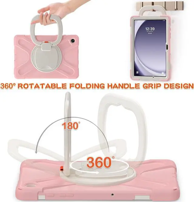 360 Degree Rotatable Kickstand & Hand Strap: 360 degree rotatable kickstand offers multiple angles for viewing, typing and reading. Ergonomic and adjustable back handle allows you to grip your tablet securely and steadily with one hand, worry-free from dropping it