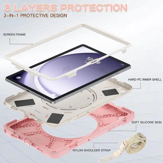 3-Layer Full Protection: Advanced 3 in 1 construction with premium hard polycarbonate and impact resistant silicone material offers comprehensive protection for your tablet.Durable military-grade shock-proof case can effectively prevent accidental drops, bumps, slips and scratches